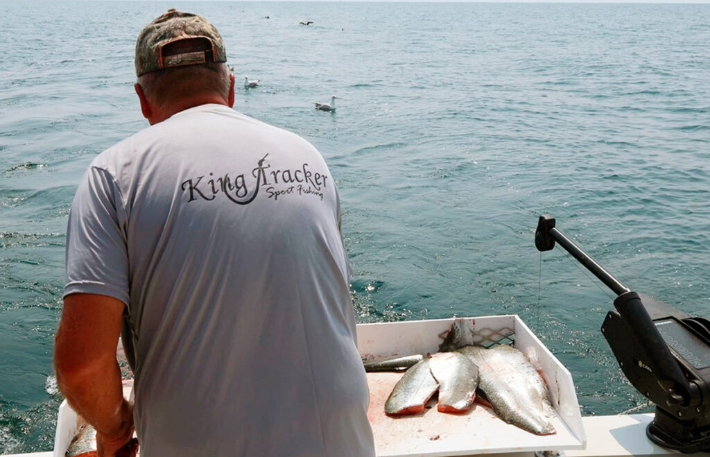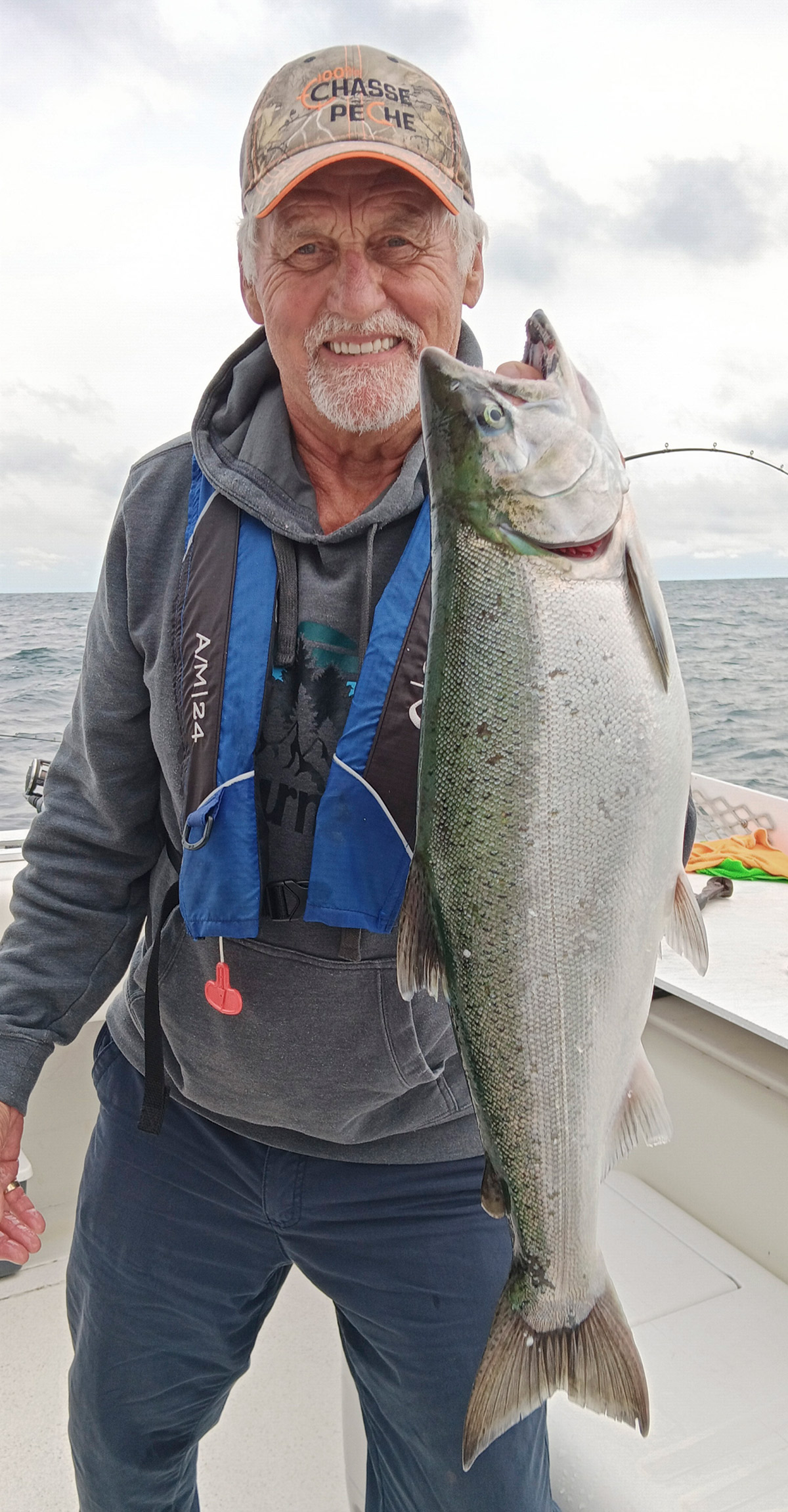 L’équipe de guides de Luc Ledoux met cinq bateaux spacieux et confortables, avec salle de bain, à la disposition de sa clientèle. Les bateaux ont une longueur qui varie de 31 à 33 pi et une largeur de 12 à 14 pi. De quoi se sentir en sécurité même quand le vent se met de la partie. Il s’agit de guides expérimentés, tous certifiés par Transport Canada qui vous feront passer une agréable journée sur l’eau. Évidemment chaque embarcation est aussi dotée d’équipements électroniques à la fine pointe de la technologie et de tous les accessoires de pêche nécessaires, incluant les nombreuses cannes adaptées, leurres variés, grand filet, downriggers, dériveurs et j’en passe. Il s’agit d’une sortie où vous devez seulement apporter des vêtements adaptés aux conditions météo et de quoi boire et casser la croûte durant la journée. À ce chapitre, petit conseil pour éviter de souffrir du mal de mer : gardez votre estomac plein en permanence! Ah oui, comme Luc possède plusieurs bateaux, il est possible de former des groupes corporatifs (ou pour les grosses familles…) avec repas compris.